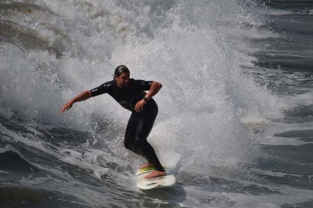 I took this picture from the pier in Ocean Beach, California back at the end of May. I have a new camera that I’ve been playing with, and I was trying to get a decent action shot from the dozen or so guys and girls surfing there that afternoon. This guy seemed to be the only one who wasn’t super retentive when it came to picking a potential wave to ride, and the only one who seemed fairly adept at riding them when he did. I hated him instantly.